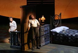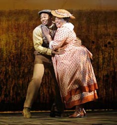 John Lee Beatty‘s spare sets are subtle evocations: a field of corn edged by the wood slats of a house; a bedroom with a brass bed and bureau; foliage and sky. Paul Tazewell‘s costumes are charming turn-of-the-19th-to-20th-century dresses, suits and derbies.