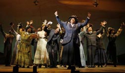 Sofia (Felicia P. Fields) is a self-confident hefty and redoubtable lady who won’t take gaff from her lover, whose answer to men‘s threats is to pick up a rifle (“Hell, No!” she sings), and who suffers tragically from her refusal to kowtow to the mayor’s wife. This production does not sugarcoat history.