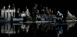 The best part of the production is the stunning staging by director Jack O‘Brien. “Salvage” opens with the cooing of pigeons and the lapping of waves made real by sound and light. There‘s little scenery: perhaps a dining table, the bed and table in someone‘s room, a villa‘s silvery chairs or, in summer, rattan, and a chandelier that seems to be an onion domed ice sculpture. All are set on a shiny round black marble stage. (The sets are by Bob Crowley and Scott Pask.) The clothes of the aristocracy lend fashionable elegance, especially at a Russian costume ball. (Costumes are by Catherine Zuber.)