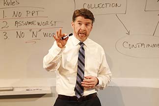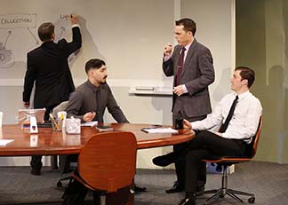 Playwright Loeb‘s plot idea might seem crazy at first, but that‘s only if you didn‘t pay attention to the early remarks of Scooter (Ben Euphrat), a young guy getting his MBA who is there as an intern because his father is on the board.