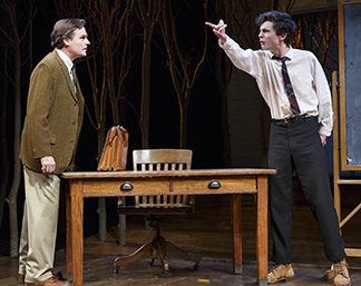 The tall lanky kid is jousting with philosophers. He‘s a charmer. But there are scrapes. He gets drunk. He steals some records. He beats up freshmen. He acts out. Headmaster Carl Schmitt (a properly rigid Chris McGarry) threatens to kick him out. “I have to protect the student body from moral peril,” says Schmitt.