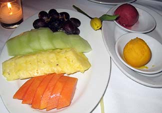 To finish, we shared a platter of melon, pineapple and two sorbets, mango and berry.