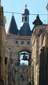 My favorite historic monument place is the 15th century Porte Cailhau, the main entrance into Bordeaux. Construction began under King Charles VIII, his coat of arms is on the arch. Cailhau was the name of a mayor of the era. The bell on the tower was rung in case of fire. As the houses were mostly of wood, fires were frequent. Today it rings every first Sunday of the month.