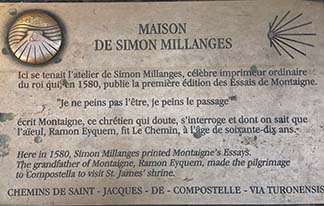 There‘s a plaque at the house of Simon Millanges, who printed essays of the 16th century mayor of Bordeaux, Michel de Montaigne, one of the most significant philosophers of the French Renaissance.