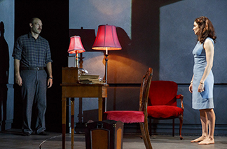 In his revival of the work that David Leveaux directed in 1982 (first presented in London in 1978), the director does as well as he can with a muddled text. Events are presented naturalistically on Mike Britton‘s effective black box stage.