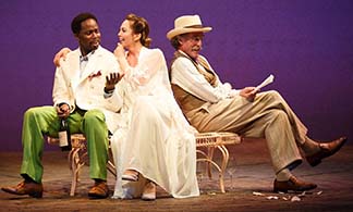 Ranevskaya needs to pay interest on a loan taken on the estate. But there isn‘t the cash. Lopakhin, a business man, the child of serfs, is here played by a black actor, Harold Perrineau. Smart choice. It’s not color-blind casting. Note that Chekhov, the son of a serf, became a doctor.