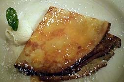 The final touch was a favorite, cr¨me brulé, with its lovely soft creamy center covered by the very slightly burned crust. Also an apricot crªpe with vanilla ice cream. Both delicious.