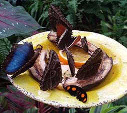 Some of creatures alight on flowers. Some are drawn to plates of fruit – bananas and orange slices. I didn‘t know that!