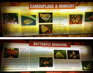 But first, you pass through rooms with exhibits that explain what you are going to see. They explain the ecology of butterfly habitats, their behavior, even their use of camouflage.