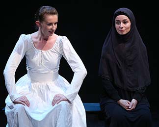 The story is told through the interweaving monologues of two women. One is middle class Tillie (the fine Rachel Smyth), 17, a top student who in the mid-1800s wants to find a husband and sails to India, where fighters for the Empire need wives. She has bought the imperial meme that her role is to produce children, and on the ship, she meets an army lieutenant who she commits to marry. Suddenly he is posted to Kabul, Afghanistan, to protect the Indian trade routes against the Russians. He tells her, “It is God‘s work, to spread our peace, wealth and civilization through commerce.”