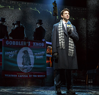 New York TV weatherman Phil Connors (Andy Karl) is in Punxsutawney, PA, to cover the annual groundhog-comes-out-of-his-burrow-and-sees-or-doesn‘t-see-his-shadow day. If he sees it, there will be six more weeks of winter. (But how do they know?) It‘s a pretty silly made-for-media fake news story. With a made for TV weatherman.