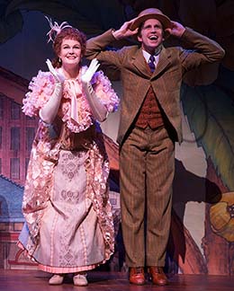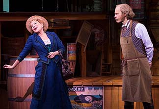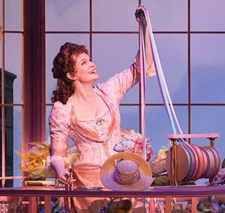 Vandergelder wants Irene Milloy (Kate Baldwin), a milliner, and a charmer. Irene wants Vandergelder to free her from life as a milliner. Baldwin shows her fine soprano in “Ribbons Down My Back.”