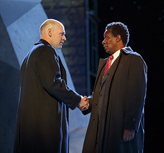 And, with a backdrop of the Capitol and blowups of Lincoln and Washington and the preamble to the Constitution – “We the people…..” — members of the Senate, led by Brutus and Cassius (the always brilliant John Douglas Thompson), plot to kill him to prevent a dictatorship.
