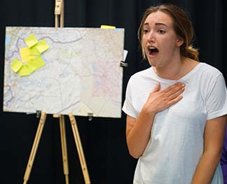 Playwright Rory Horne in a modern version suggests an ingenious way of benefiting from civilian deaths in Syria caused by America drones by using data analysis and the Internet. The director is Nina Cavaliero, who here eschews fantasy for realism.