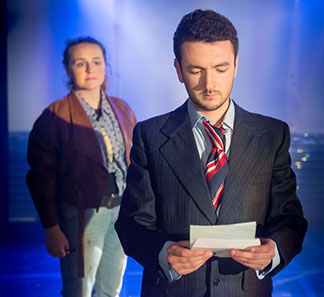Brian James O’Sullivan as the oil company flack, with Charlaye Blair as The Artist, photo Tim Morozzo.