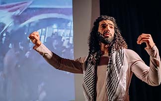 Ramy Essam became an iconic figure of the 2011 Egyptian mass protest that toppled dictator Mubarak but lost to military power. This autobiographical show is his powerful and moving story. And it’s very good theater.