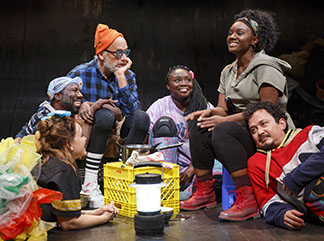 The ensemble cast moves through their double roles with dark comedic aplomb. And director Sarah Benson almost makes one think gritty “documentary” instead of biting, sardonic play.