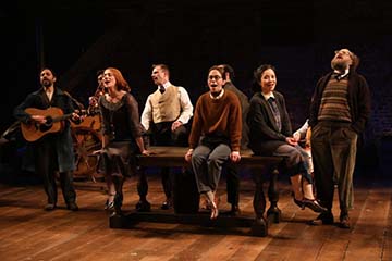 The Fiasco Theater company has become known for iconic, clever, delightful productions of Shakespeare plays that are both complex, with live music performed by the actors, and minimal and intimate, with few characters and small settings. This production at the Classic Stage Company opens with terrific sea shantys in a country style. It will proceed to joyous drinking songs. And a charming and very accessible production of Shakespeare‘s comic play about shipwrecked twins and mismatched lovers.