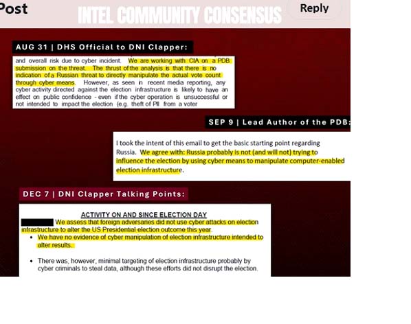 So, the DNI put out a report that the mainstream media would use to say the opposite, that Russia interfered in the election. However, one didn’t have to wait till now to suspect the report. Anyone looking at the Jan 2017 document that asserted Russian interference (“Background to ‘Assessing Russian Activities and Intentions in Recent US Elections”) would see on the last page the admission that the claims were not backed by evidence. Here is the full document.