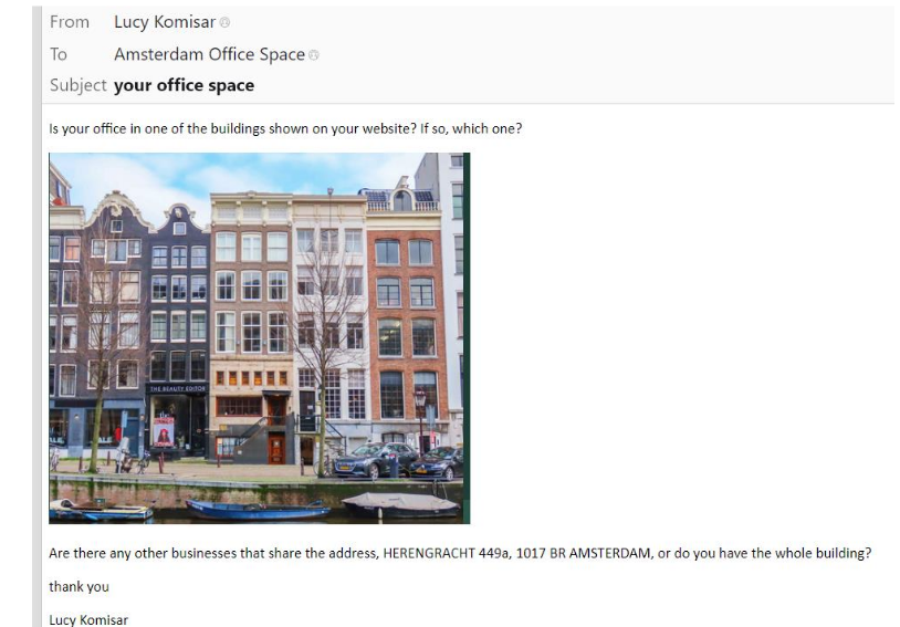 Andrew Sullivan founded the OCCRP in 2007. The office that runs its European operations is at Herengracht 449A in Amsterdam. Bellingcat, set up by Eliot Higgins in 2014, lists a European headquarters at the same Herengracht 449A in Amsterdam. Neither has an office there. The address they give is that of Amsterdam Office Space, a phone-answering and mail-forwarding service. Plus, they get a Chamber of Commerce registration.