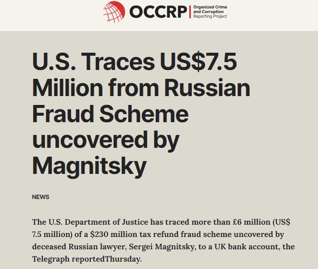 So OCCRP’s Browder/Magnitsky story was a fake from start to finish. But it allowed the US government, with the help of compliant media, to create a story of “evil” Russia and target Russian government and corporate officials.