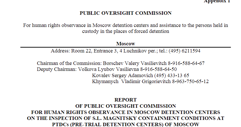 There is also no evidence that Magnitsky was murdered by anyone, though he got bad medical care. An extensive investigation was done by the Public Oversight Commission, a Russian NGO that monitors prisons. It found no evidence of Browder’s claimed beatings or murder. Its report was filed in US federal court and was used in a report by the Physicians for Human Rights, Cambridge, Mass.