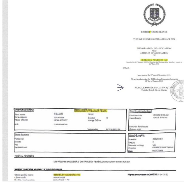 Browder’s Berkeley Advisors had been set up by Mossack Fonseca to hide money moved out of Russia.
