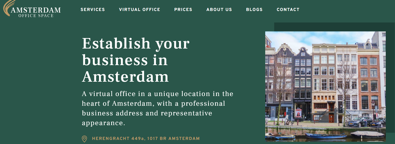 “With a virtual office you can register your company” https://www.amsterdamofficespace.nl/en/ and https://www.virtualofficeseurope.com/