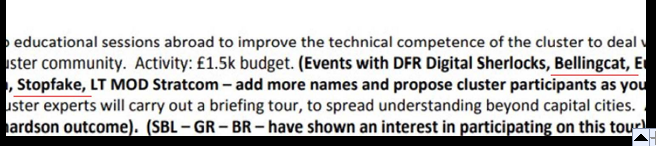 The Zinc Network was seeking support for organizing NGOs to confront the “increasing threat from Kremlin-backed disinformation.” In a 2018 report produced for the UK Foreign Office, called “Upskilling to Upscale: Unleashing the Capacity of Civil Society to Counter Disinformation”, it discussed possible partners. It said that “Bellingcat was somewhat discredited, both by spreading disinformation itself, and by being willing to produce reports to anyone willing to pay.” Page 72.