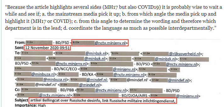 An email from November 2020 revealed that the Bellingcat investigation was shared with Amsterdam’s National Coordinator for Security and Counterterrorism (NCTV) prior to publication, indicating a collaboration to shape media narratives. Or did the sharing work both ways?
