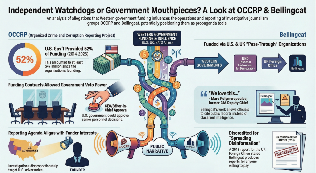 Their funding and dubious output show that OCCRP and Bellingcat are propaganda operations. Readers and serious media should not accept their reports without solid independently confirmed evidence, excluding statements by the US and other NATO governments.
