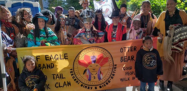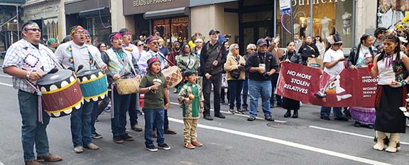 The Indigenous Peoples Parade had a very few political comments, one about Native women who had been disappeared. “No more stolen relatives.”