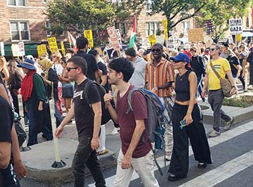 Here are photos from the Free Palestine march in Greenwich Village today.
