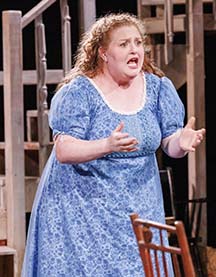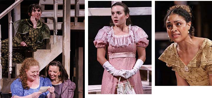 The cast creates the girls and their beaux brilliantly. I first identified the women by the colors of their Empire high-waisted gowns, then knew them from their characters’ moods. This play might even get people to read the novel!