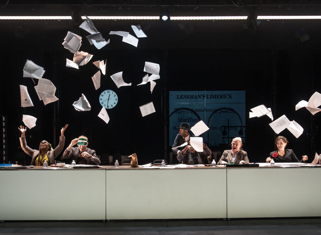 The conceit is familiar from the company’s legendary eight-hour “Gatz,” which conjured theater from the entire text of “The Great Gatsby.” Here, the approach is more selective—a two-and-a-half-hour “fast-forward” tour through Bloom’s day, with much of the novel cut. But the format remains stubbornly static. For much of the evening, the actors sit and deliver, rarely interacting. They play multiple roles, but the decision to keep them planted in chairs, reciting toward us rather than engaging one another, leeches drama from the proceedings. Theater relies on action and reaction; when performers don’t move or relate, audiences drift. I confess, my own mind wandered frequently into the more scenic streets of Dublin.