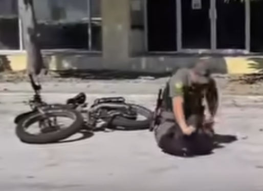 First he knocked the kid off his bike. And smashed him to the ground.
